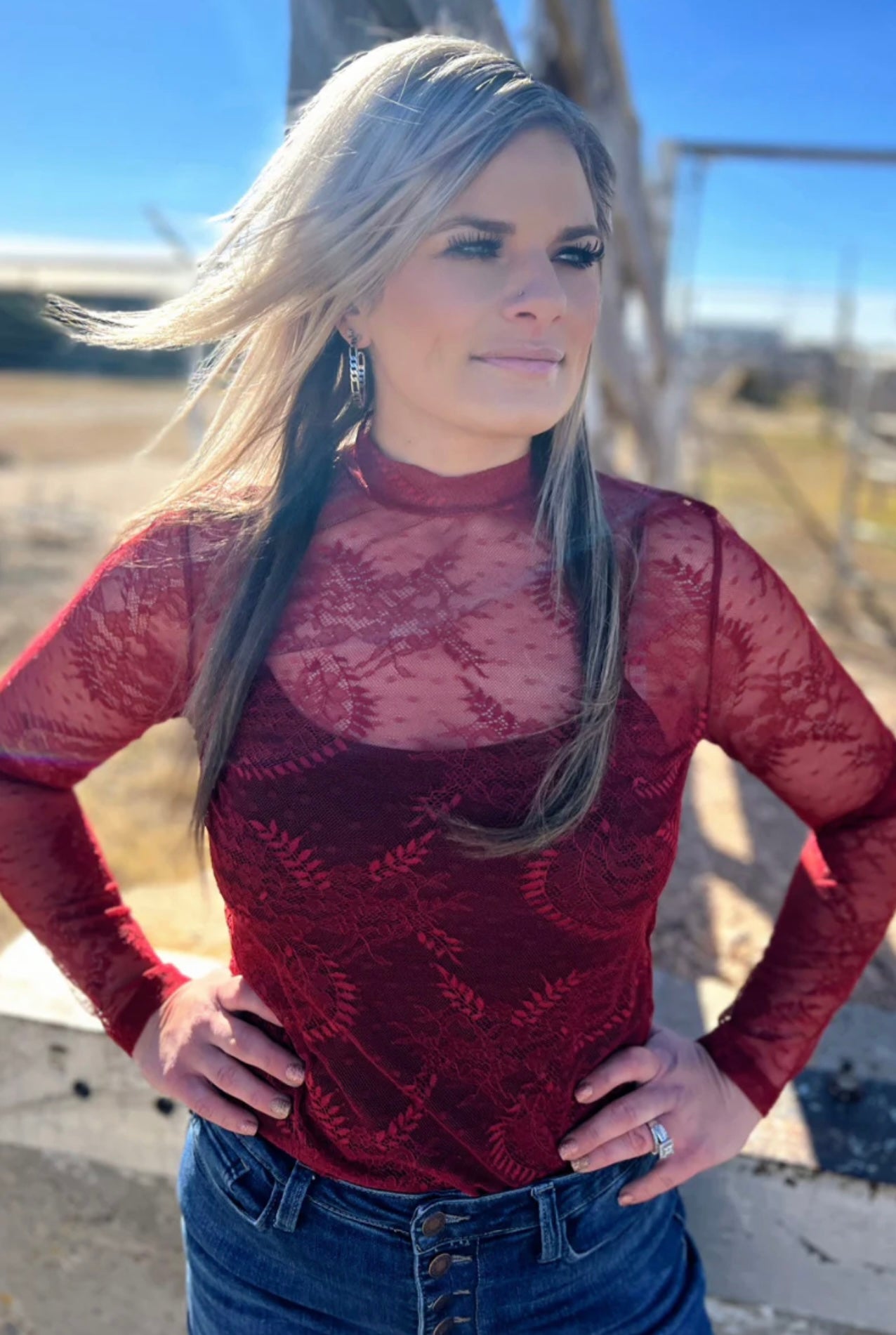 Experience the perfect combination of style and comfort with our Write It In Red Lace Top! Made from delicate lace mesh, this cute top will elevate any outfit. Feel confident and fashionable in our stylish design. Get it now and make a statement!